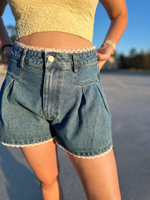 lace denim shorts
